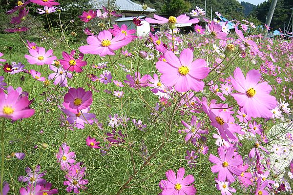 広島県:庭園、道路や休耕地などで栽培され、周辺で野生化、7~10月に咲く。