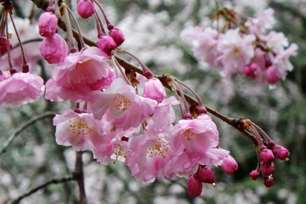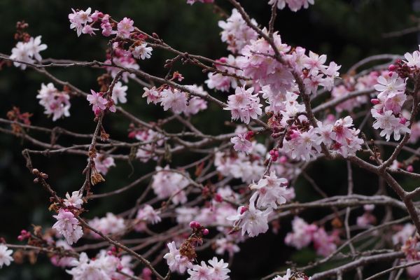 広島県:枝垂れ性が強いものが庭木としてもよく植栽され、4月上・中旬に咲く。