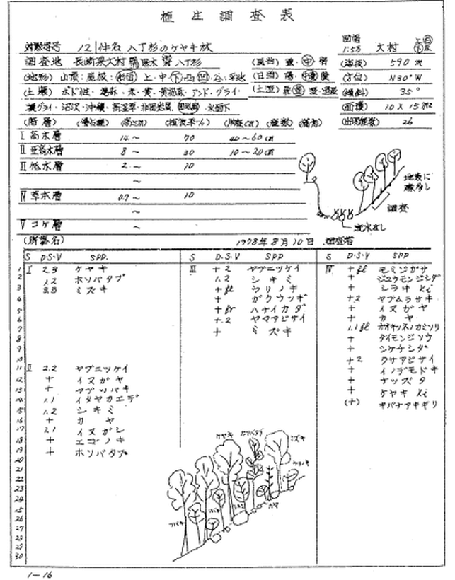 特定植物群落調査要綱にある見本、「自然環境保全基礎調査 植生調査報告書」で、調査結果が公表されているため、良く知られた形式であろう。