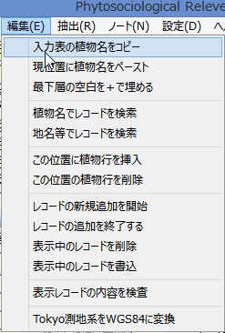 - [編集]メニューの[現位置に植物名をペースト]で、カーソル行以降に貼り付け